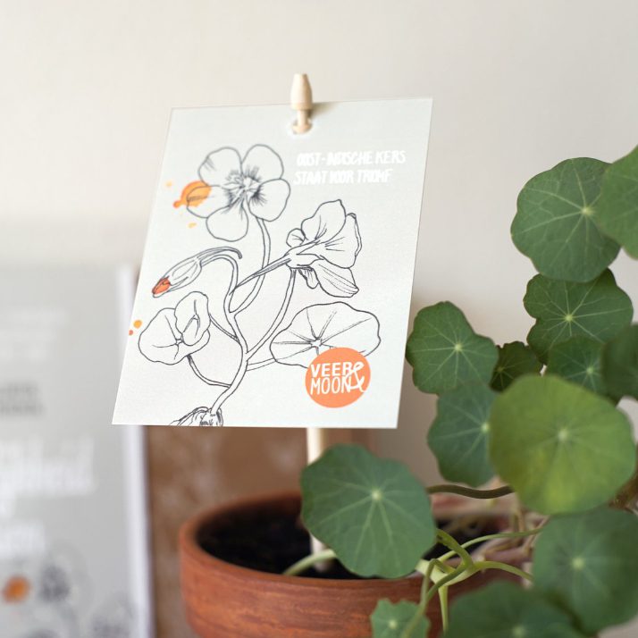 – 3 plantetiketten met zaai-instructies en houten stekers